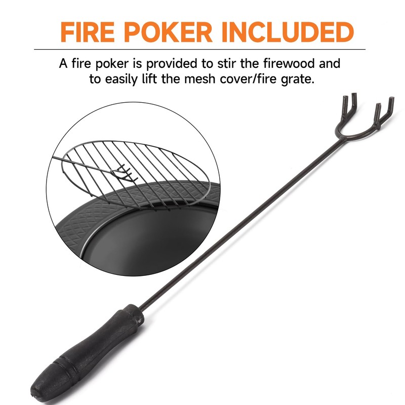 • All-Inclusive Set: Includes everything you need for an outdoor fire experience, including a fire pit, fire poker, mesh spark screen, log grate, assembly instructions, tools and premium nylon waterproof cover