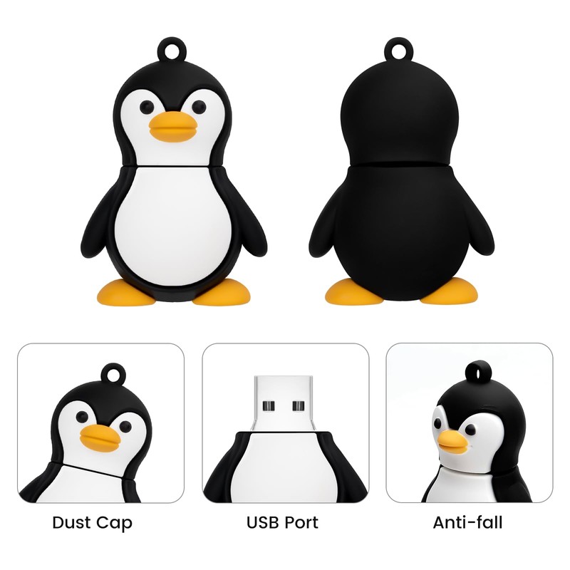 • Storage Capacity: 32GB, USB Flash Drive x 1 Cute penguin model flash drive for external data storage.