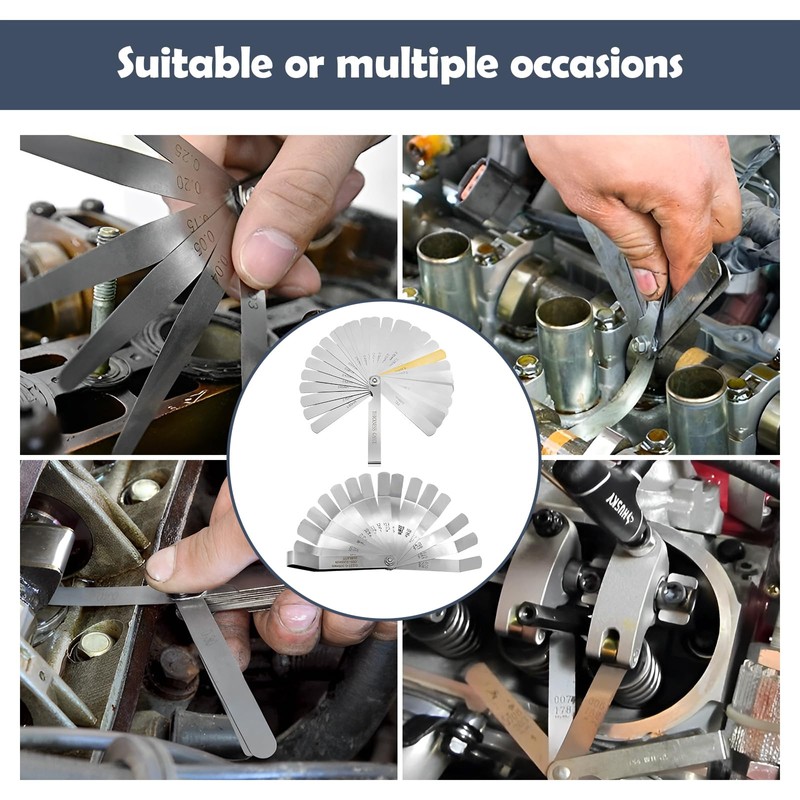 - Fühlerlehren-Set Messbereich: Mit klarer metrischer SAE-Doppelmarkierung, Messbereich der geraden Fühlerlehre mit 32 Blättern: 0.0015-0.035inch (0.04-0.88mm); 16 Blätter Offset-Fühlerlehre Messbereich: 0.005-0.020inch (0.127-0.508mm)