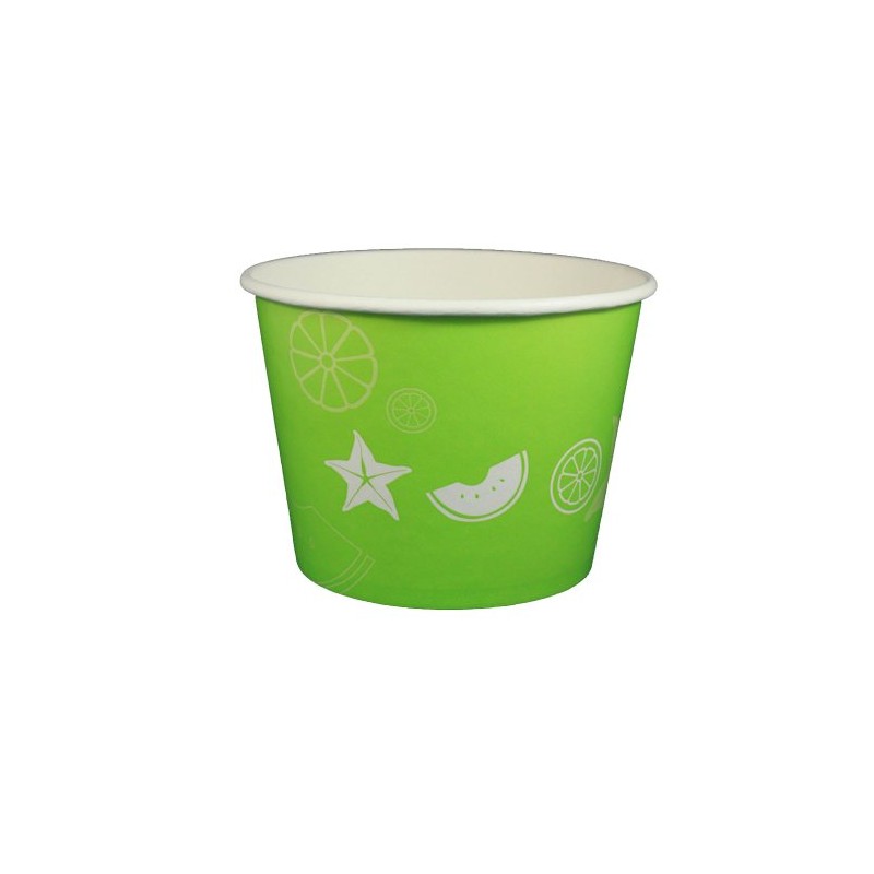 32 oz Yogurt Paper Cups- 600 Count (Lime Green Fruit Pattern)