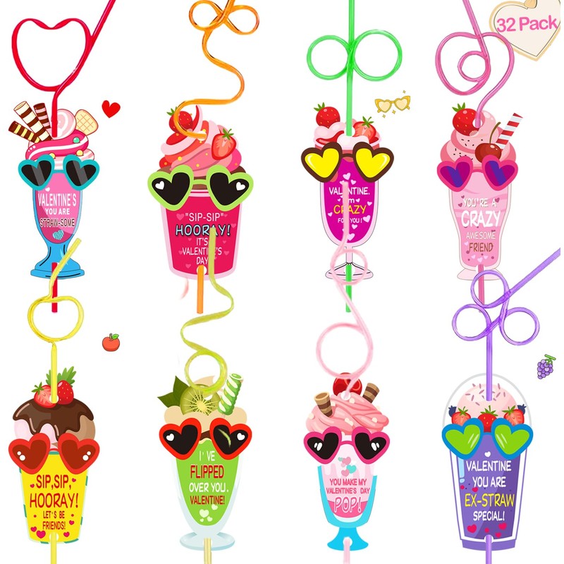 - ❤️Great Value – 32 Packs Valentine’s Day Gifts Cards with Colorful Crazy Straws.