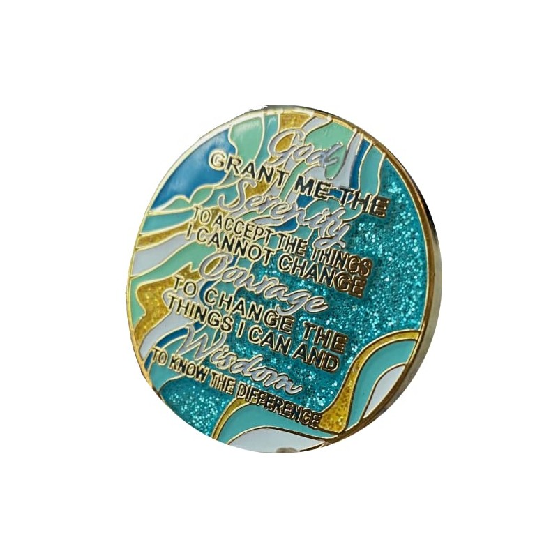 - 32 Year AA Medallion Elegant Marble Caribbean Aqua Glitter Gold Sobriety Chip