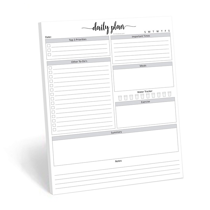 321Done Daily Planning Notepad - 50 Sheets (8.5x11) - Day to Do List Planner Today Checklist Tear-Off Note Pad - Made in USA - Simple Script Letter Size Large