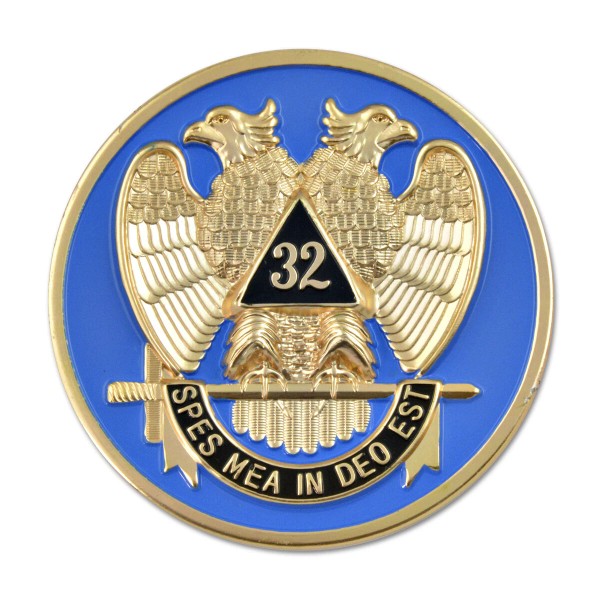 32nd Degree Scottish Rite Round Masonic Auto Emblem - [Blue & Gold][3'' Diameter