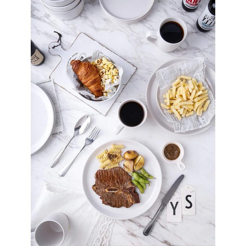 32pc Round Unique Lipped Edge Off white Stoneware Dinnerware Sets - Premium Heavier Material 100% Dishwasher & Microwave Safe, Dual Solid Color Artfully Design Durable Round Plates, Bowls and Cups Set