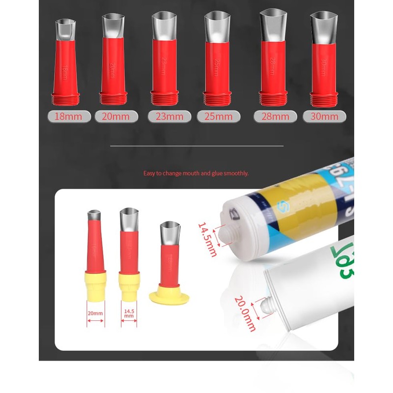- 3 Connection Bases Replacement: Caulking tube tips set suitable for glass glue, sealant, tile epoxy glue, structural glue (sausage), various silicone grouting caulking gun equipment.