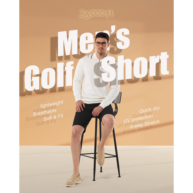 - Quick Dry: 33,000ft golf shorts for mens is made of water-resistant fabric helps you stay dry and feeling cool, comfortable. This pair of shorts is greatly wear-resistant, button closure and zippered fly provide a secure fit.
