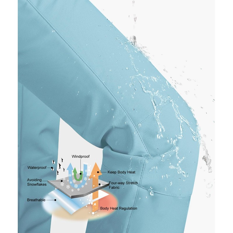 33,000ft Women's Softshell Snow Pants Waterproof Warm Ski Pants Insulated Ripstop Snowboard Winter Pants Light Blue