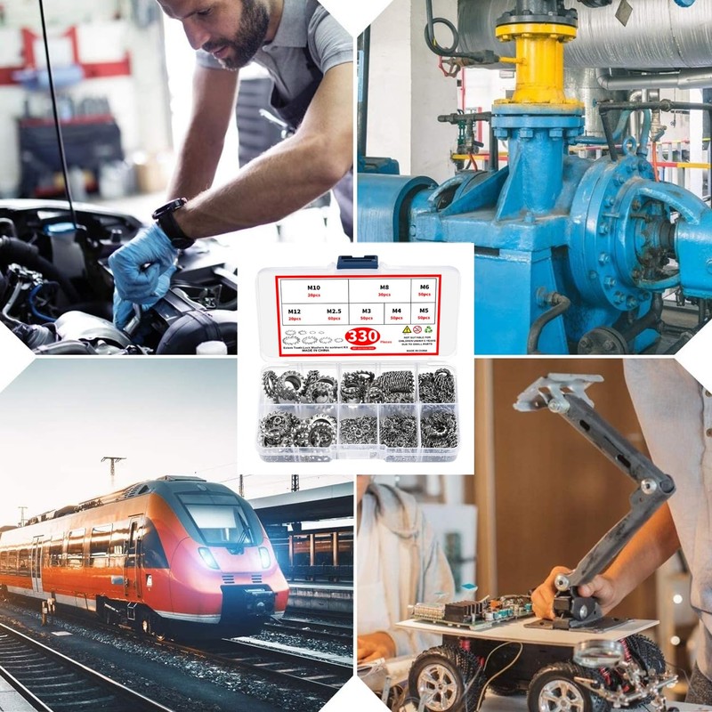 330 Pcs Stainless Steel Washers Assorted Set – Internal Tooth Lock Washers for Electrical & Mechanical Fastening, Anti-Loosening Kit