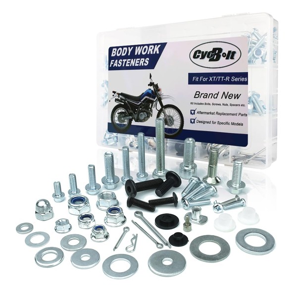 - Extensive Applications: The Bolt Kit Used for Bodywork, Side Panels, Plastics, Front and Rear Fenders, Number Plates, Seat, and Radiator Shrouds, Fork Guards, Fuel Tank, Controls, Exhaust Pipe, Silencer, Handlebars, Swing Arm Components, Skid Plates, Crankcase Bolts, Shifter Bolt, Clutch and Magne-to Covers, Chain Adjusters, Full Set of Sprocket and Rotor Bolts, Carburetor Bowl and Mounting, Pipe, and more.