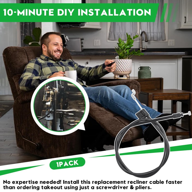 - 10-Minute DIY Installation: No expertise needed! Install this replacement recliner cable faster than ordering takeout using just a screwdriver & pliers. Ideal recliner chair replacement cable fix