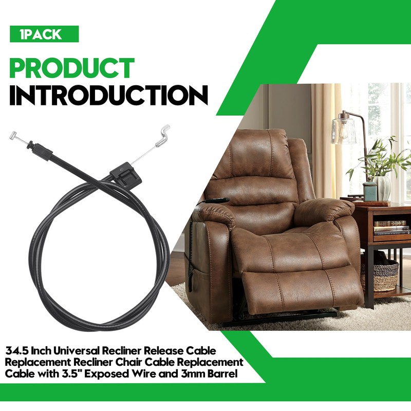 - Precision Cable Specs for Guaranteed Fit: Total recliner cable length: 34.5". CRITICAL exposed length: 3.5" (must-match dimension for any recliner chair cable replacement). Measure carefully before purchase
