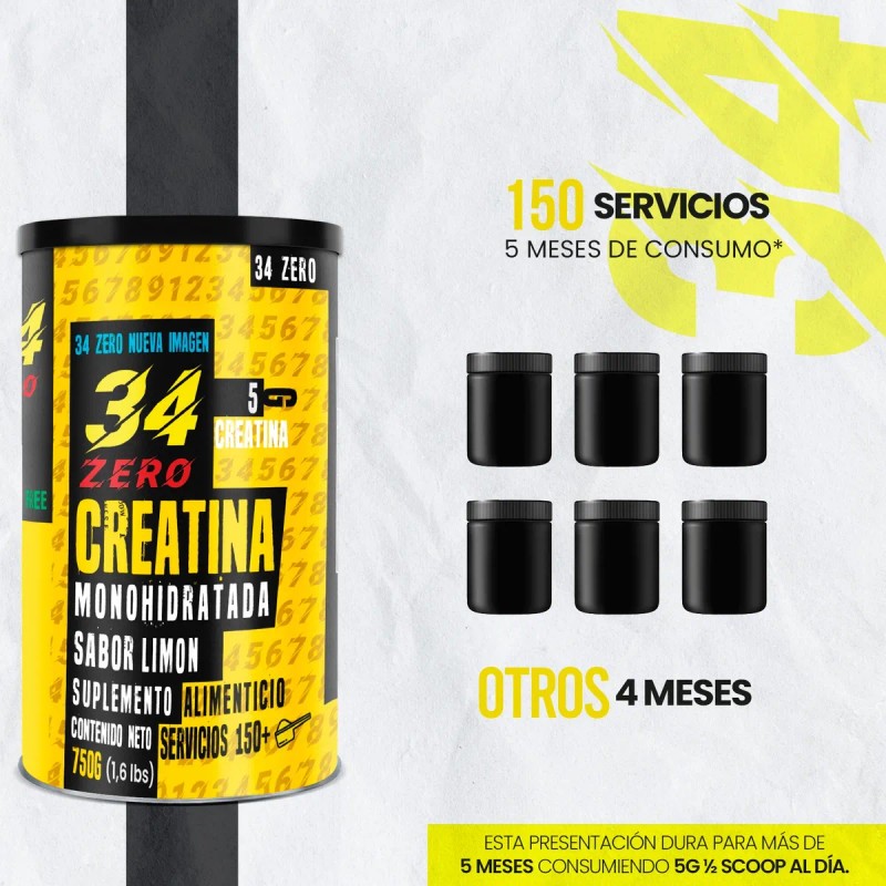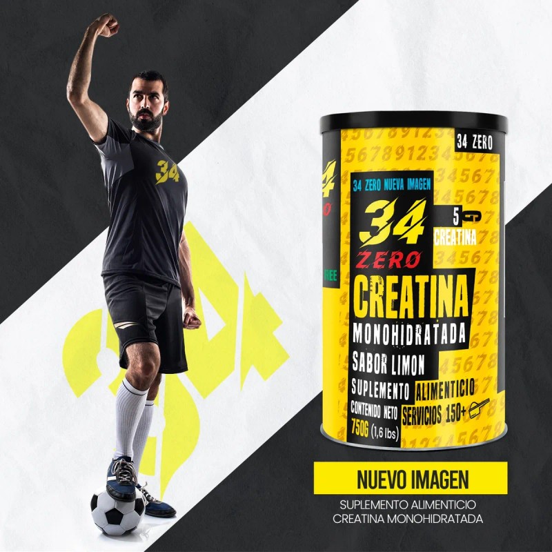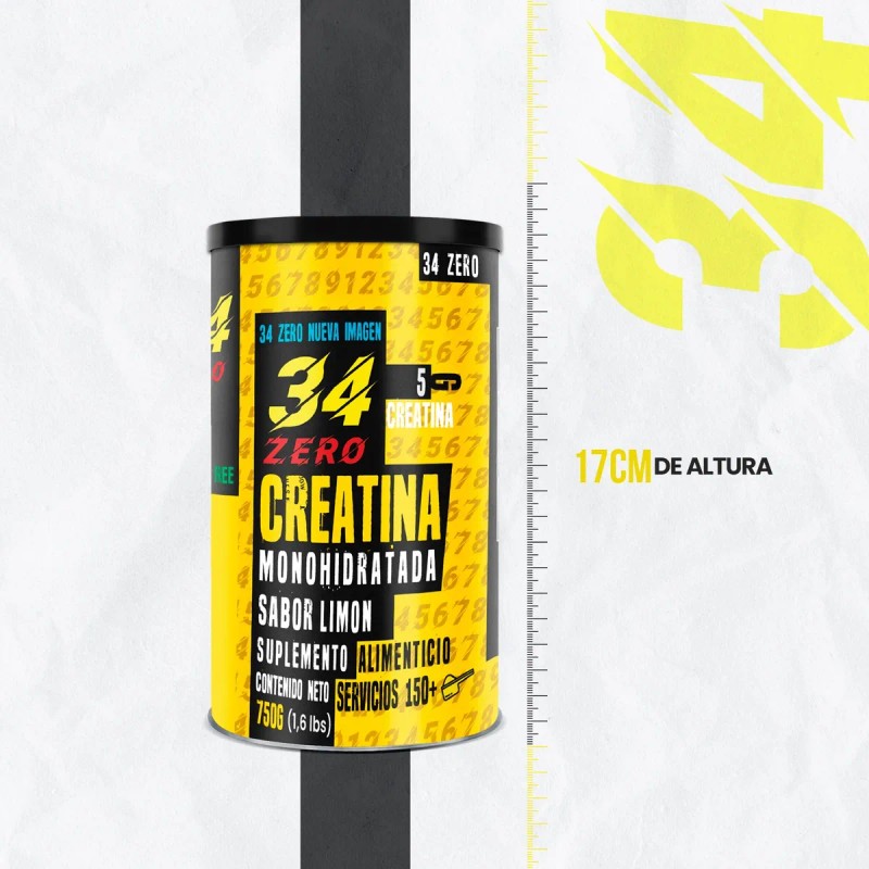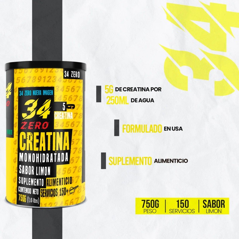 34 Zero Creatina Monohidratada 750g 150 Servicios Sabores Limón