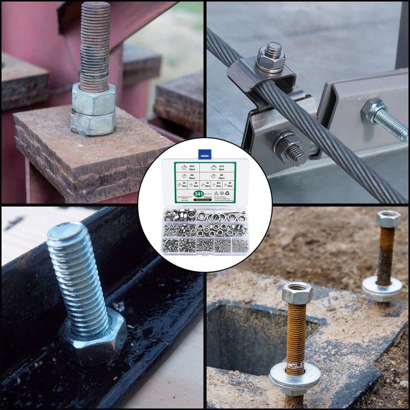341 Pcs Hex Nut Assortment Set, Self-Locking Lock Nuts, Captive Nut, Stainless Steel Anti-Loose Locknuts, Screwnuts for M2/M2.5/M3/M4/M5/M6/M8/M10/M12