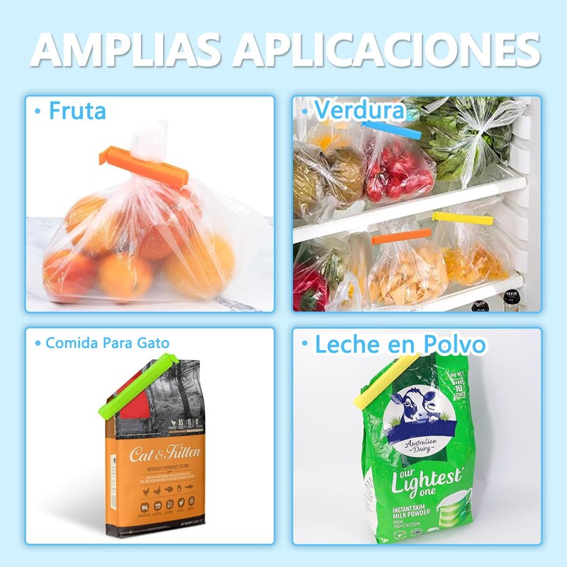 - 【Mayor Elasticidad】Los clips de sellado de bolsas mejorados son más flexibles y se pueden utilizar en el congelador. Gracias a su elasticidad mejorada, estos clips no se rompen ni se parten como otros clips, lo que garantiza que sus alimentos se mantengan frescos y deliciosos durante más tiempo.