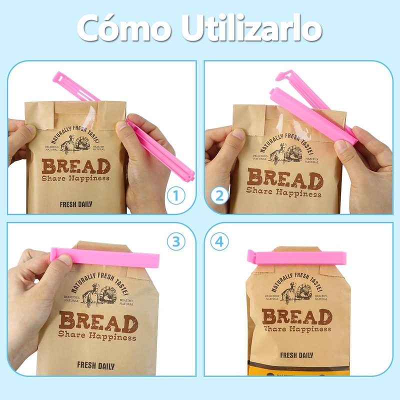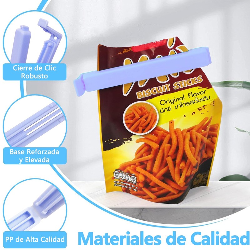- 【Lo ÚLtimo en Pinzas de Cocina】¿No ha tenido tiempo de disfrutar de esa deliciosa bolsa de patatas fritas, palomitas u otros aperitivos? No se preocupe, ¡no se estropearán fácilmente! Sella fácilmente tus alimentos con nuestros revolucionarios clips de plástico para patatas fritas para asegurarte de que se mantienen frescos y listos para llevar. Estos clips están diseñados para sellar completamente el envase de su comida, proporcionándole un delicioso manjar durante más tiempo.