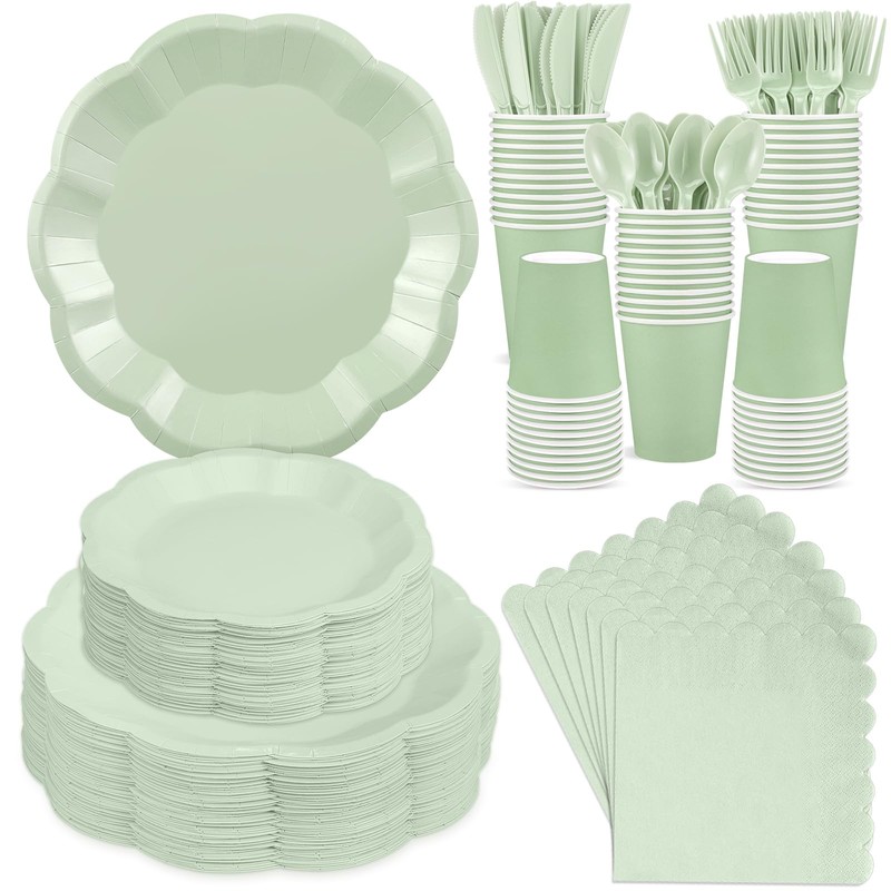 - 【Serves 50 Guests】You will receive 50 x 9 inch sage green plates, 50 x 7 inch sage green plates, 50 x paper cups, 50 x paper towels, 50 x knives, 50 x forks, 50 x spoons, multiple quantity sets can meet your party needs and serve multiple guests