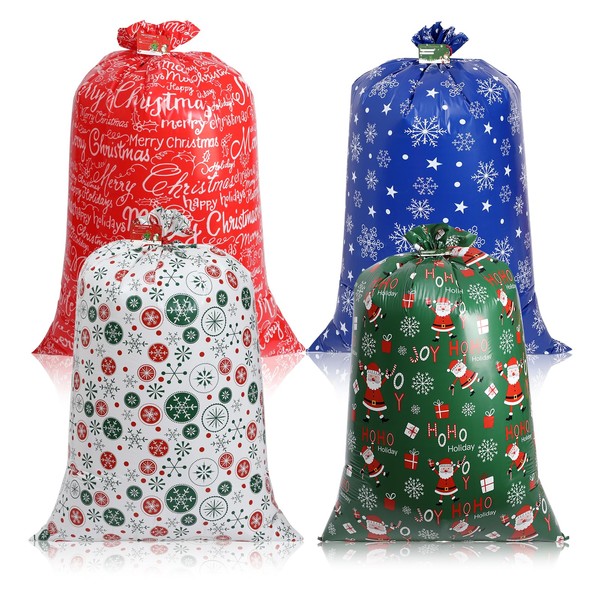 36 * 56 Inches 4 Count Extra Large Christmas Gift Bag Oversized Holiday Plastic Gift Bags Christmas Jumbo Gift Wrapping Bags Storage Bag for Xmas Party Favors Supplies Gift Wrapper Bag
