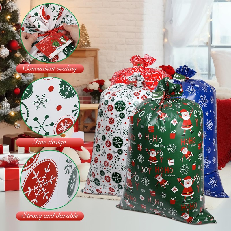 - Wide Range of Uses: the jumbo storage bags are very suitable for birthday gifts, baby shower gifts, Christmas gift packaging, holiday gifts and Christmas gift decoration, nice for classrooms, Christmas trees, wine bottles and other party decorations, bringing sweet and warm vibe