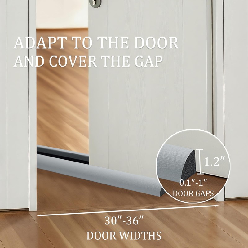 36" Grey Under Door Draft Stopper-Adjustable Gap Filler(Block Hot/Cold Air,Insects and Dust;No Adhesive;Ideal for Interior/Exterior Doors;Fine Wood Grain Style)