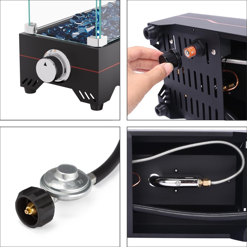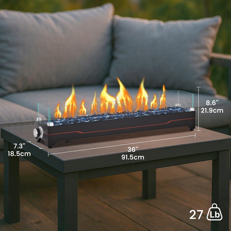 - 36-inch Table Top Propane Fire Pit, 30,000 BTU Tabletop Firepit for Patio, Outdoor Portable Fireplace Rectangular Fire Bowl w/Wind Glass Shield