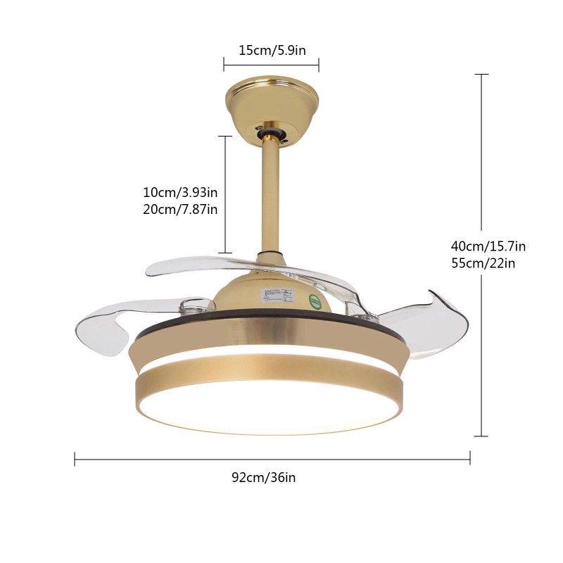 36" Modern Ceiling Fan Light w/LED Bluetooth Music Player Retractable Blades NEW