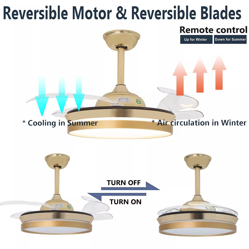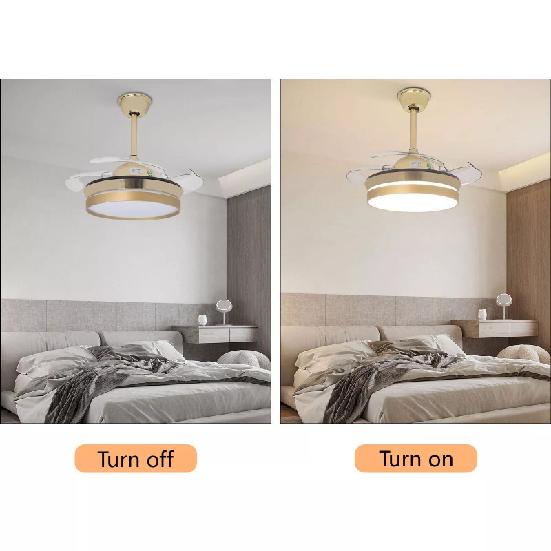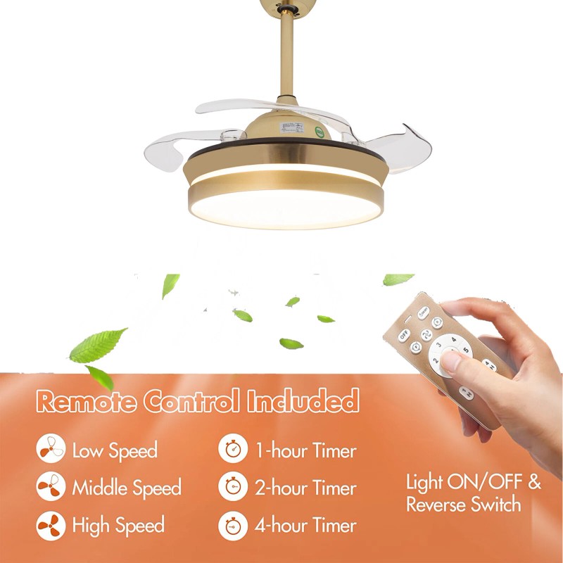 36" Modern Ceiling Fan Light w/LED Bluetooth Music Player Retractable Blades NEW
