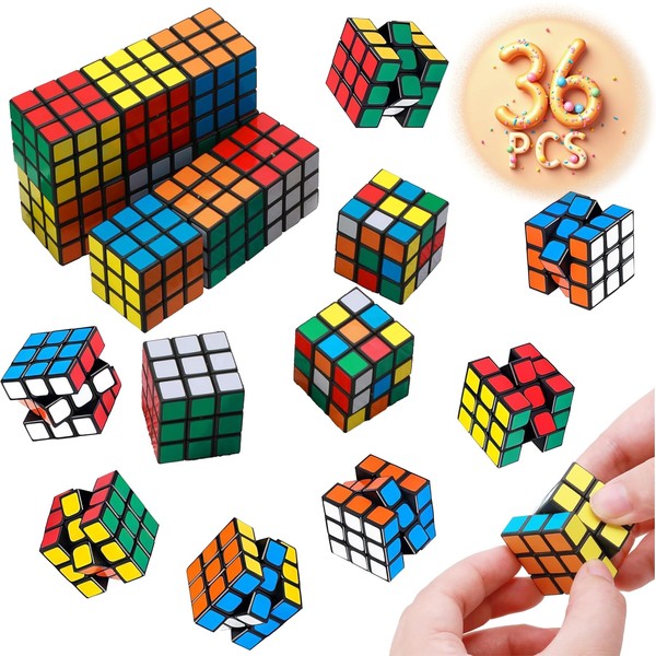 36 Pack Mini Cubes Bulk, 3x3 Magic Puzzle Cubes 1.18in, Fidget Toy, Brain Teasers, Stress Relief, Party Favors, Birthday Gifts, Educational Toys for Kids & Adults, Boys & Girls, Easter Basket Stuffers