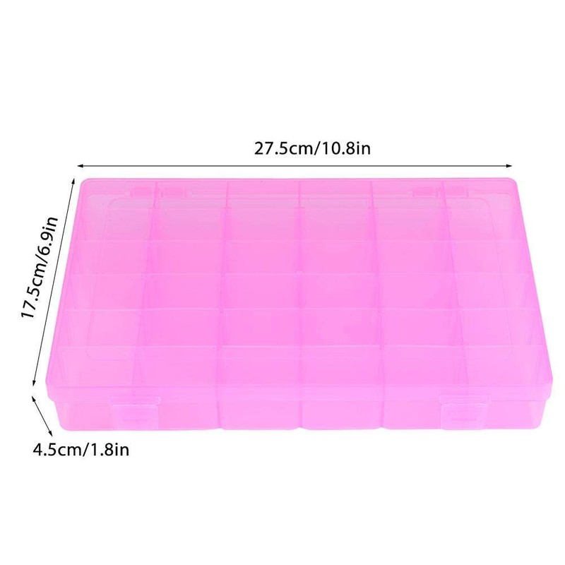 36 ranuras de plástico transparente caja de joyería ajustable organizador pendientes caja de contenedor de almacenamiento anillo de maquillaje pendiente collar organizador caja(Rosado)