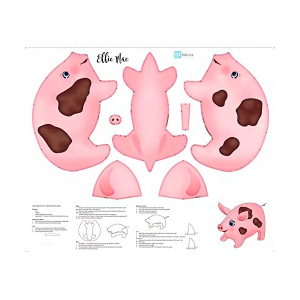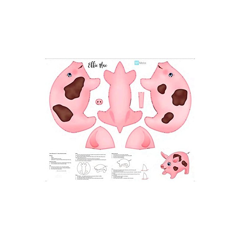 36" X 44" Panel Ellie Mae Stuffable Pig Stuffed Animal Kids Toys Cotton Fabric Panel (D475.78)