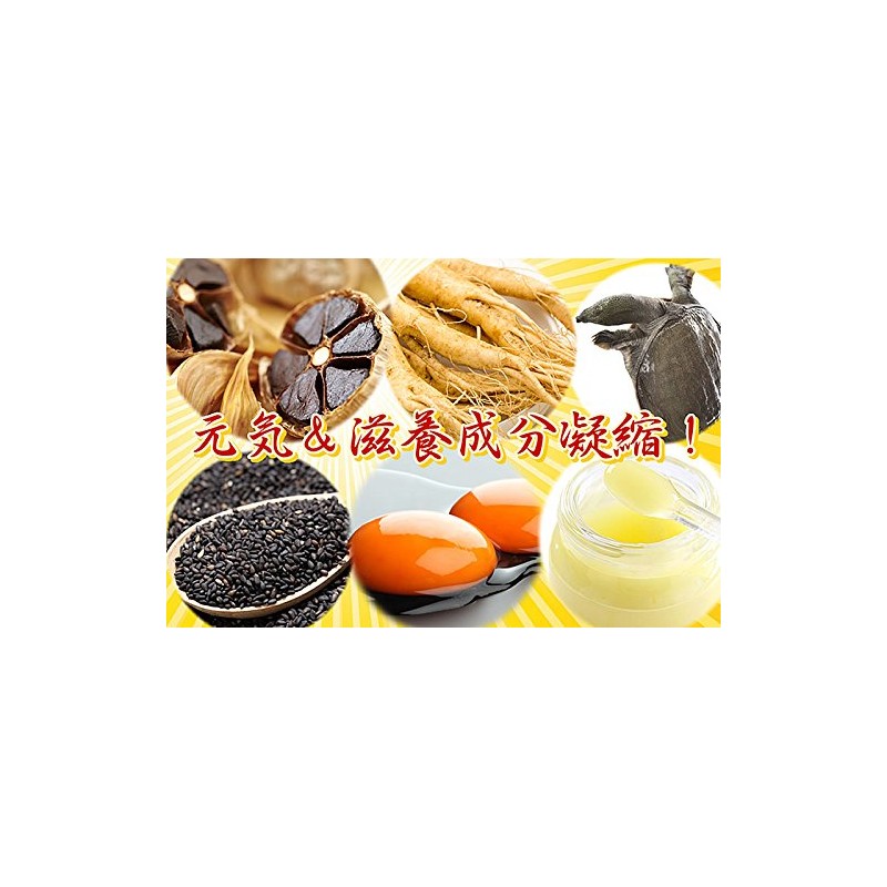 - 国産発酵黒にんにく卵黄、ゴマペプチド、高麗人参など元気成分配合