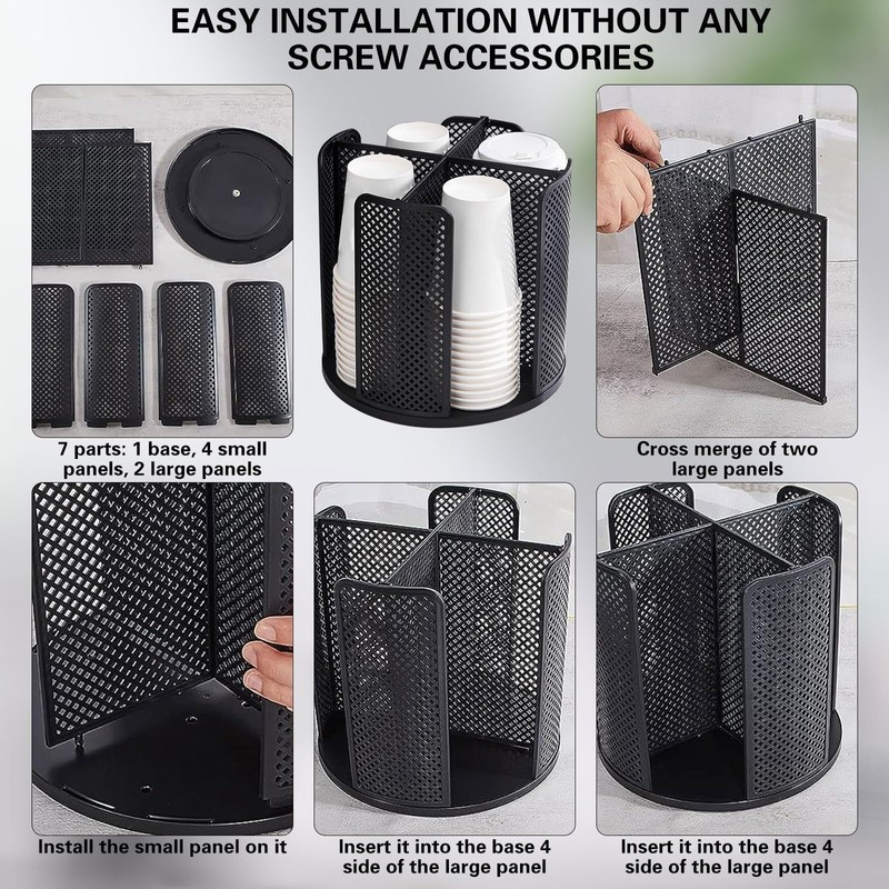 - Easy installation: paper cup dispenser is simple and easy to install. Simply follow the instructions and you will receive a complete worktop organiser in just a few minutes