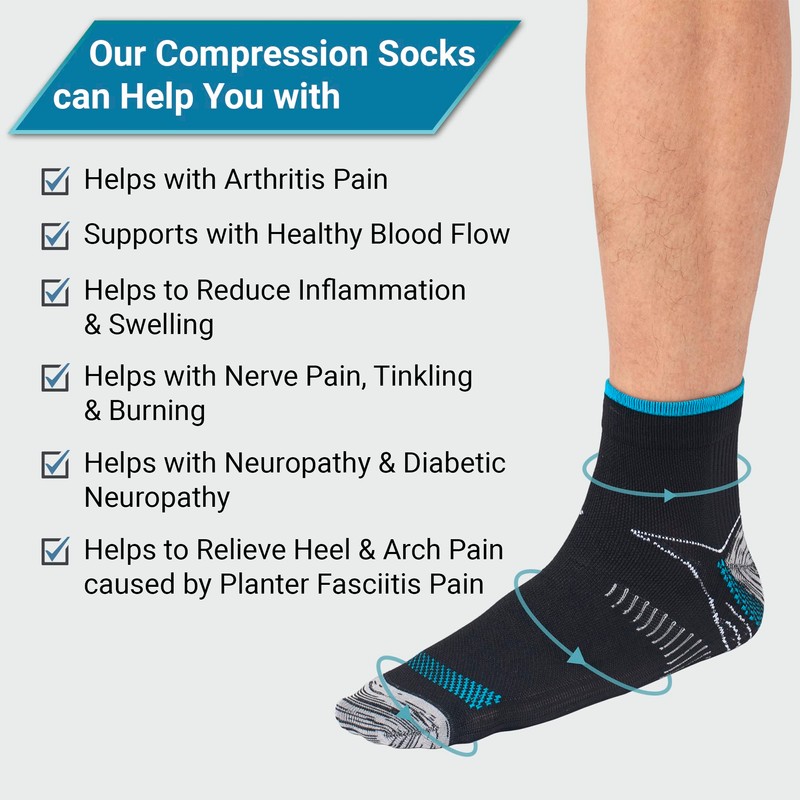 - 360 Support for Your Feet: Our ankle compression socks provide support for your feet and arches, helping with comfort during physical activities or long travel.