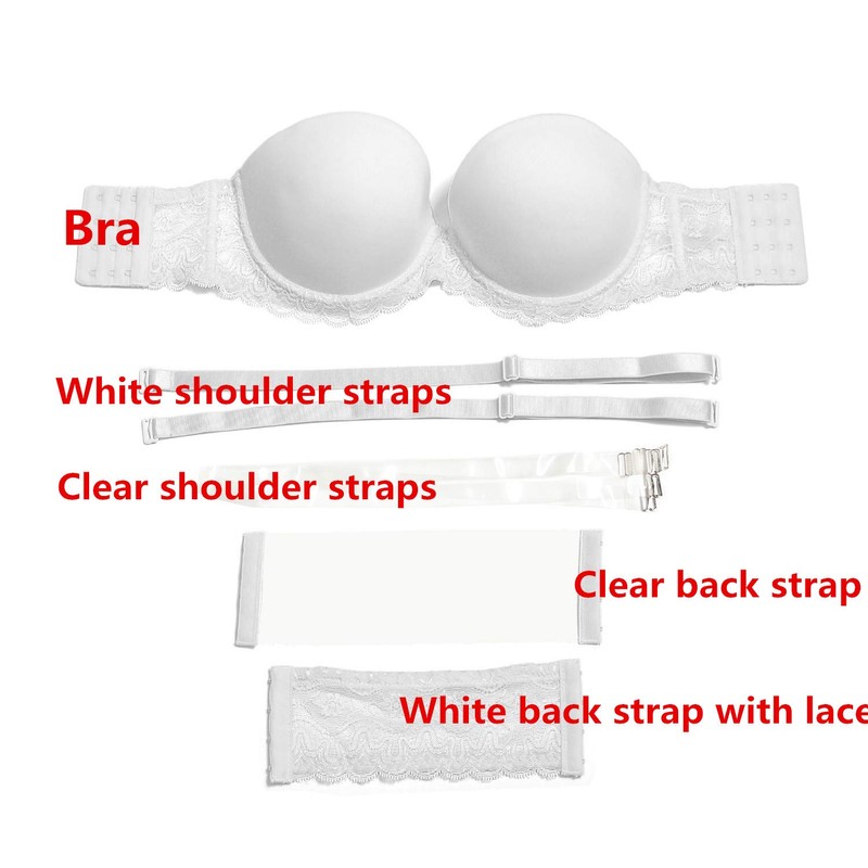 36C White Strapless Clear Back Bras with Straps Plus Size Multiway Lift Up