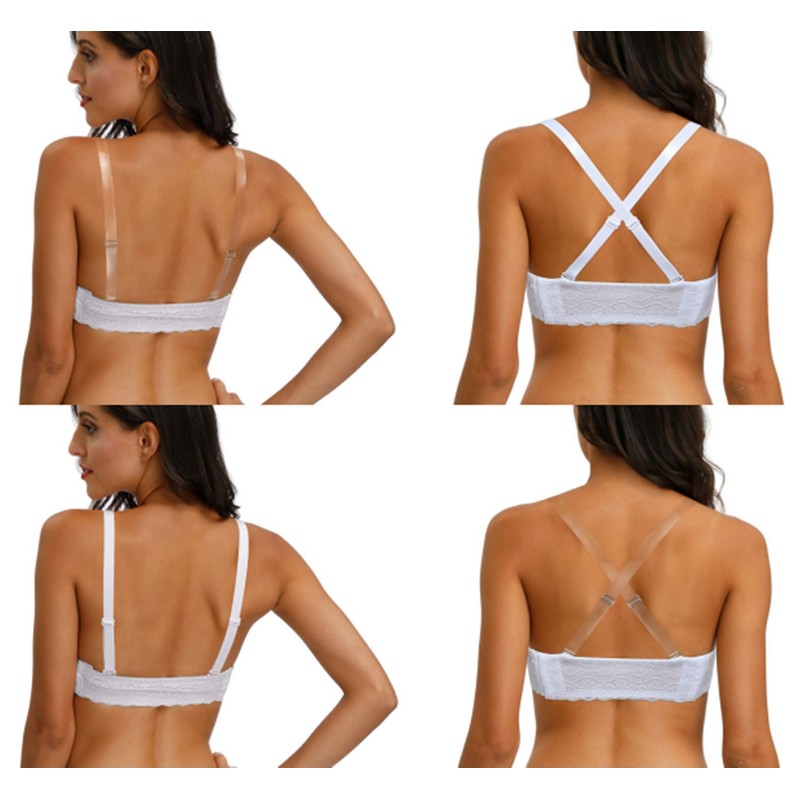 • Convertible bra comes with 1 bra, 2 color shoulder straps, 2 clear shoulder straps, 1 color back band and 1 clear back strap. So it converts 6 ways for versatility-- strapless traditional crisscross halter backless and one shoulder for strapless dress, low cut tops, backless dresses, low back t-shirt, and everyday's wear.