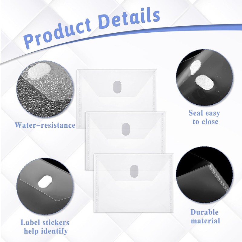 - 📁 ✅【36 PACK ENVELOPES】✅ Our pack contains 36 clear plastic envelope folders with hook & loop closure.Enugh quantity to organize your files to meet your daily needs,The envelope folders can be used for school, home, work, office and business travel.