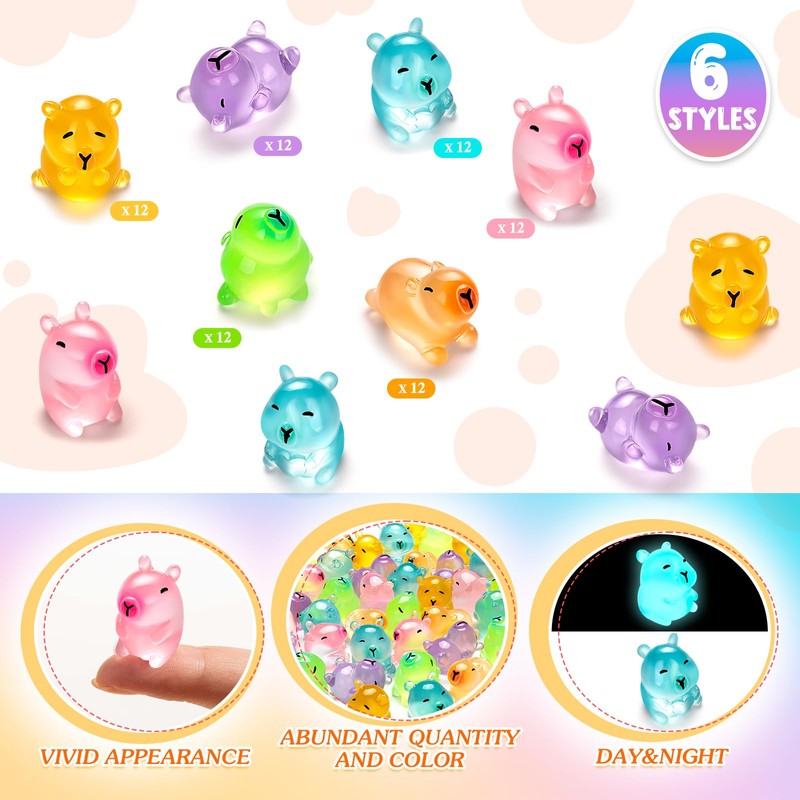 - CHARMINGLY NAIVE CAPYBARA SET: This capybara set includes 36 pcs mini capybara statues that glow in the dark, including 6 styles such as sitting, lying down, and lying down. They are vivid and adorable, meeting your diverse creative and decorative needs, and helping you create a unique and personalized space