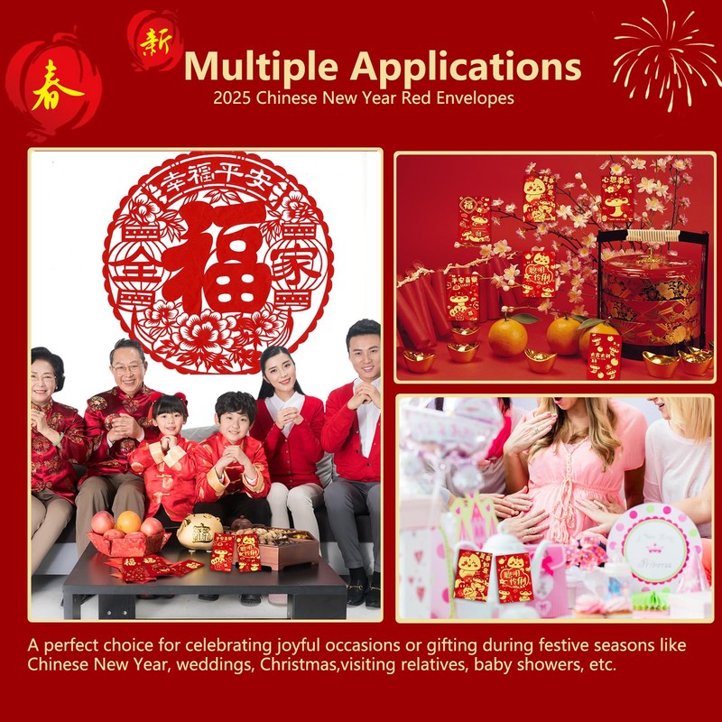 - Superior Material: Crafted from sturdy, thick paper, these lunar new year of the snake red envelopes are designed to withstand frequent handling and ensure a durable and elegant finish. The secure closure, featuring a tab and slot design. There is no need for tape or glue, making these chinese red envelopes 2025 user-friendly and convenient. Great value lucky money red packets for year of the snake 2025.