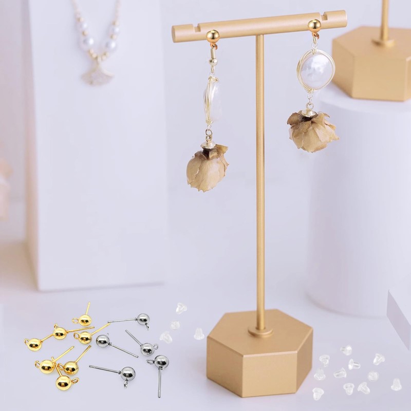 - [3 Sizes to Choose] Our earring posts with balls about 3mm/0.12inch, 4mm/0.16inch, 5mm/0.2inch in diameter, 15mm/0.6inch in Length, and holes about 1.5mm/0.06inch, the silicone earring back is about 5mm/0.2inch in length. Various sizes perfectly meet your needs. You can choose the right earring accessories for your various pendants.
