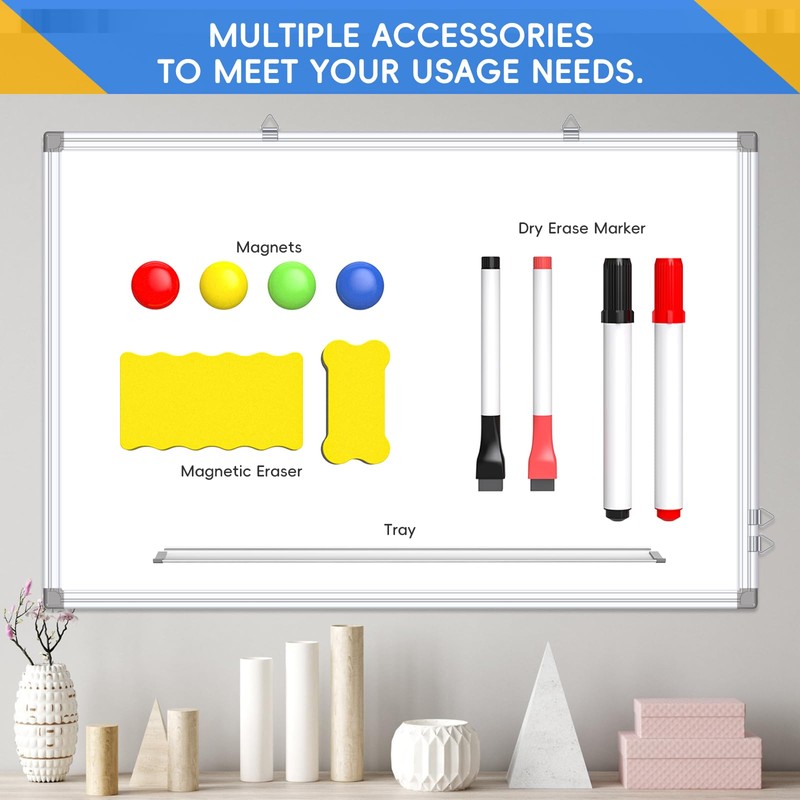 - Complete Kit Included: Comes with 2 dry-erase markers, 4 magnets, 1 eraser, and a convenient pen tray for easy organization and accessibility.