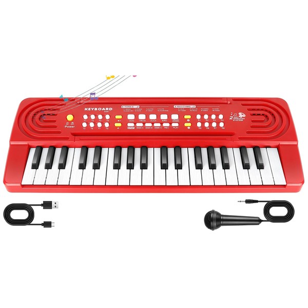 37 Key Upgrade Keyboard Piano for Kids Beginners Electronic Red Piano with Microphone Music Toys for 3 4 5 6 Year Old Girls Boys Gifts Ages 3-5