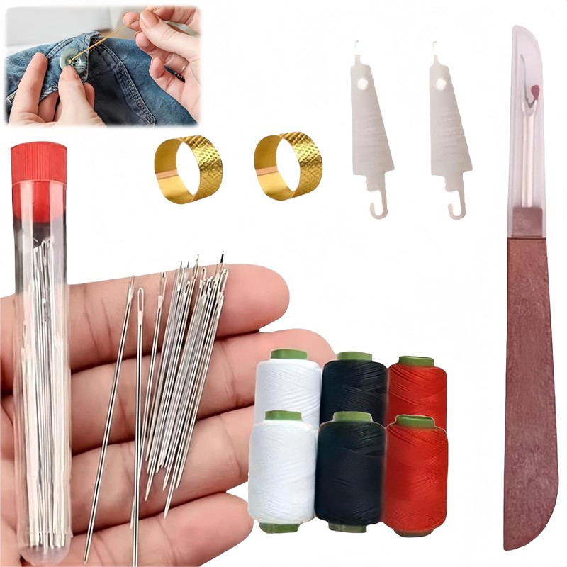 - 37PCS SEWING TOOL SET:37pcs sewing kit effortlessly guides threads, ribbons, or yarn through even the tiniest needle eyes.Oval-eyed sharp needles of sewing accessories ensure a smooth process.From snipping stray embroidery threads to fixing sewing mishaps,the sewing needles handle every fiber challenge with ease