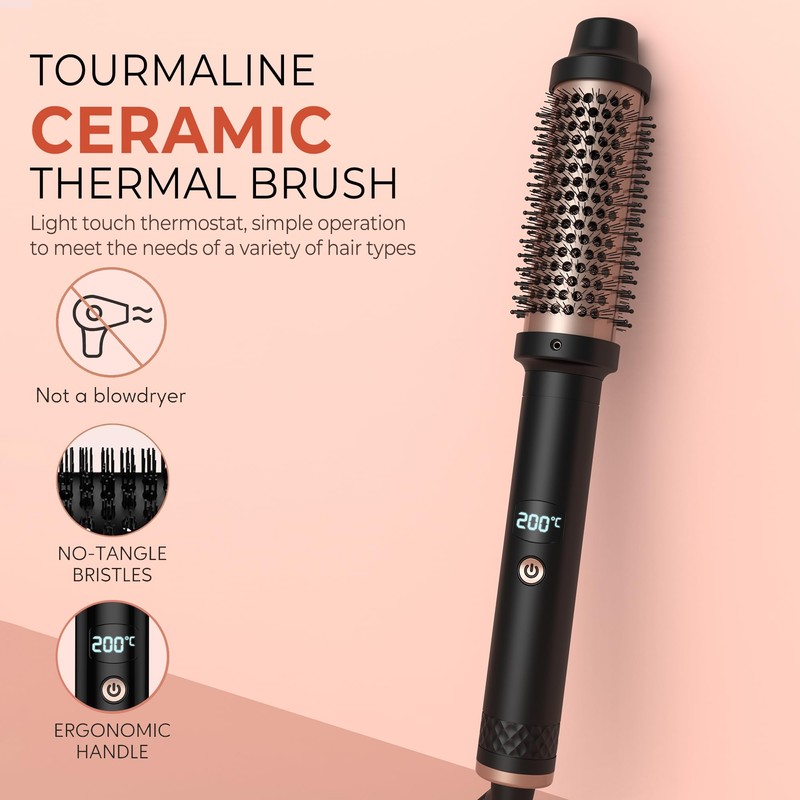 - Ionic thermal brush 3 in 1: the thermal brush round brush large emits negative ions to reduce heat damage and frizz and heat part is tourmaline, which provides even heat to the hair. Nylon bristles could help create smooth, silky curls and tangle free. You can use this thermal brush to straighten your hair and give it some volume.
