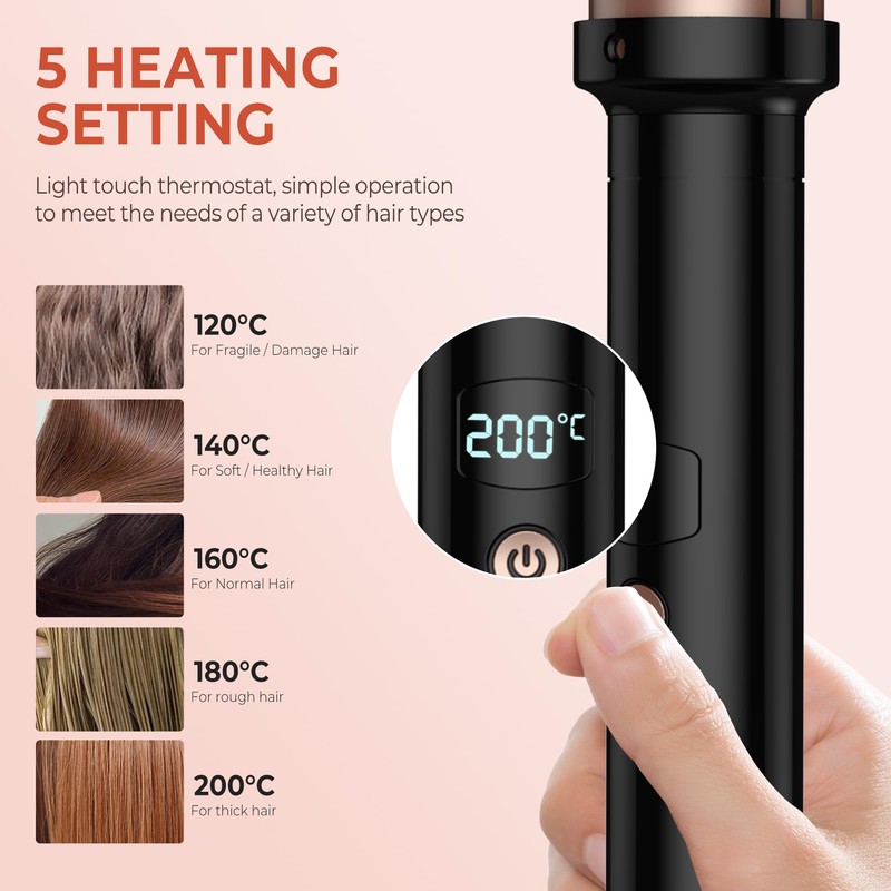 - Temperature adjustable 120-200 °C: you can see the temperature to choose the suitable temperature for your hair. Multiple temperature meets all thermal brush of all hair types. For safety reasons, the thermal brush is designed to automatically shut off within 30 minutes.