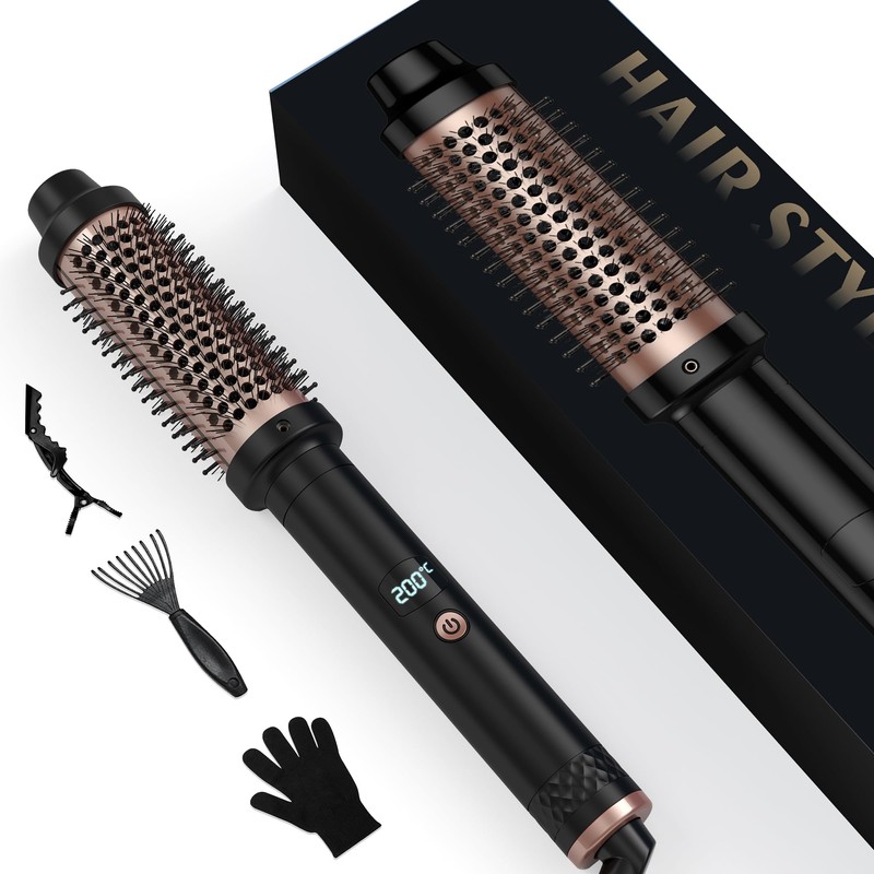 38 mm Thermal Brush 3-in-1 Thermal Brush Heated Round Brush LCD Display 120-200°C Increase Hair Volume Loose Curls Straight Hair Lightweight Compact Size Dual Tension Suitable for Travel