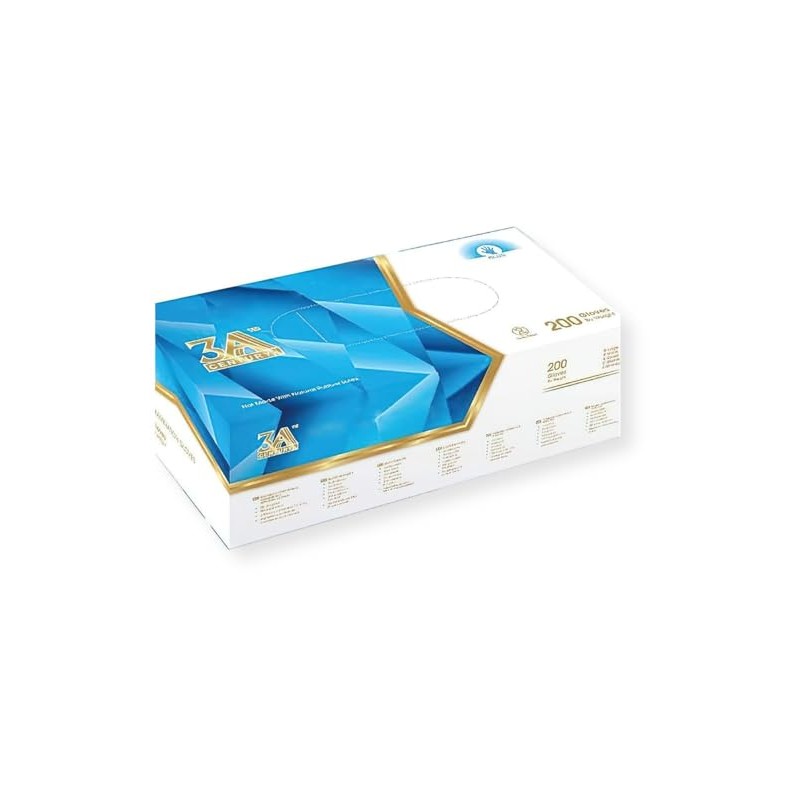3A Century 3A-33317-N-PF Blue Gloves, Size M, Box of 200 Gloves; Textured Fingertips; Ambidextrous Design; Beaded Cuff