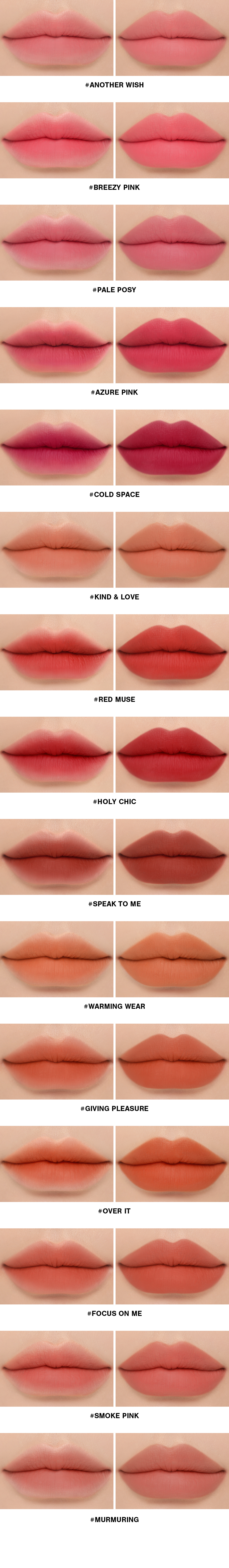 #MURMURING: Dimethicone, isoamylaurate, diphenyldimethicone/vinyldiphenyldimethicone/silsesquioxane crosspolymer, vinyl dimethicone/methicone silsesquioxane crosspolymer, polyethylene, isoeico Acid, diisostearyl maleate, polyglyceryl-2 triisostearate, titanium dioxide (CI 77891), hydrogenated polyisobutene, silica, candelilla wax, bis-diglyceryl polyacyl adipate-2 , Diglyceryl Sebacate/Isopalmitate, Yellow No. 4 (CI 19140), Dimethicone Crosspolymer, Synthetic Wax, Phytosteryl Macadamiate, Carnauba Wax, Sorbitan Isostearate, Caprylic/Carbon Pric triglyceride, ethylhexyl hydroxystearate, polyhydroxystearic acid, polyglyceryl-2 diisostearate, ethylhexyl palmitate, isopropyl myristate, isostearic acid, lecithin, triethoxyca Prilyl silane, stearalkonium hectorite, polyglyceryl-3 polyricinoleate, propylene carbonate, pentaerythrityl tetra-di-t-butylhydroxyhydrocinnamate, red iron oxide (CI 77491), yellow iron oxide ( CI 77492), Red No. 202 (CI 15850), Blue No. 1 (CI 42090), Black Iron Oxide (CI 77499)