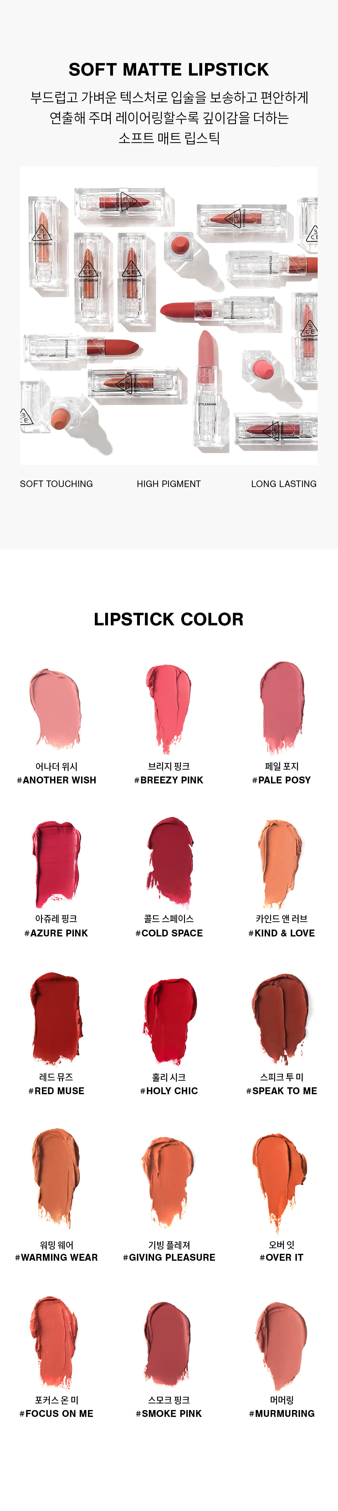 3CE [Beauty Awards] 3CE Soft Matte Lipstick (Increased) Blur Water Tint Mini 1.5g (Random), PALE POSY