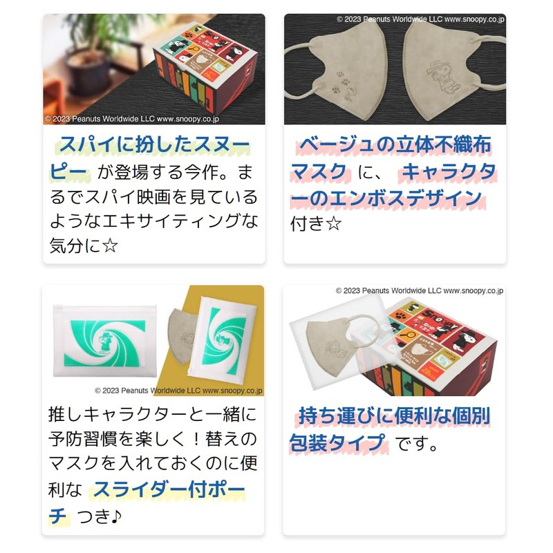 不織布マスク スヌーピー3D チャームポイントマスク20枚入りBOX 個別包装