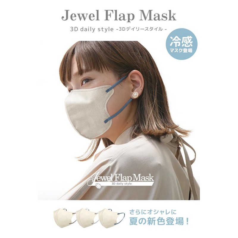 ジュエルフラップマスク 3Dデイリースタイル 冷感マスク バイカラー 3Dマスク 立体マスク 不織布マスク 血色カラー くちばし メイクがつきにくい 夏 ひんやり 冷感 快適 息がしやすい 夏用マスク 蒸れない 耳が痛くならない 20枚 ニュアンスカラー (Lサイズ・冷感・オールドレース×ソフトブラウン)